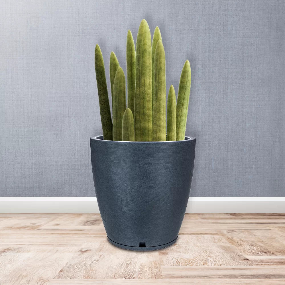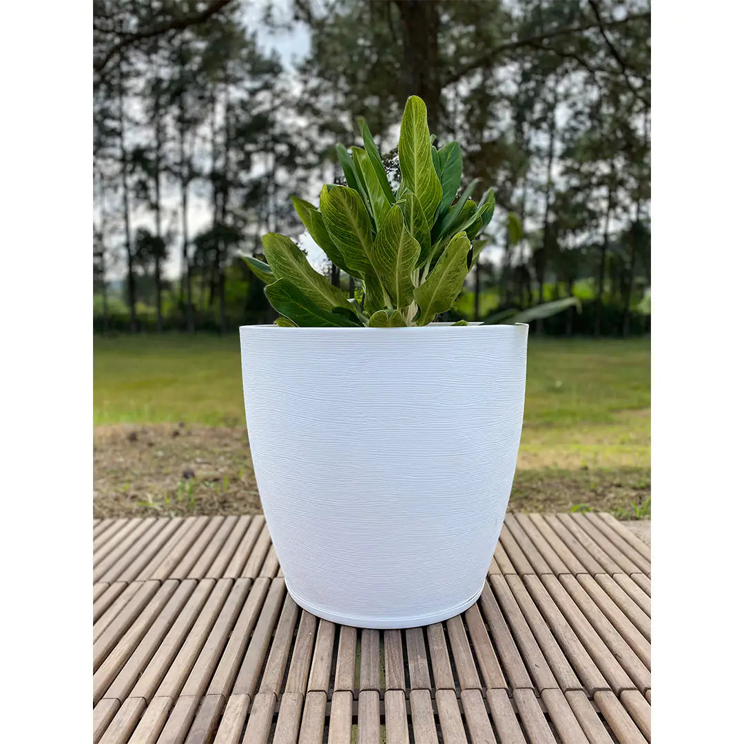 ¡Esta línea tiene efecto mármol y aporta gran elegancia a cualquier proyecto de decoración y paisajismo! Todos los maceteros de esta línea se suministran con el platillo incluido en el mismo diseño.