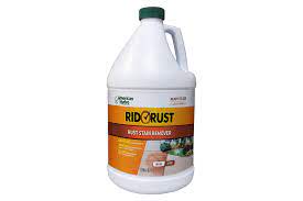 - Limpiador de óxido: El quitamanchas Rid O Rust limpia y elimina el óxido que queda en los sistemas de riego.