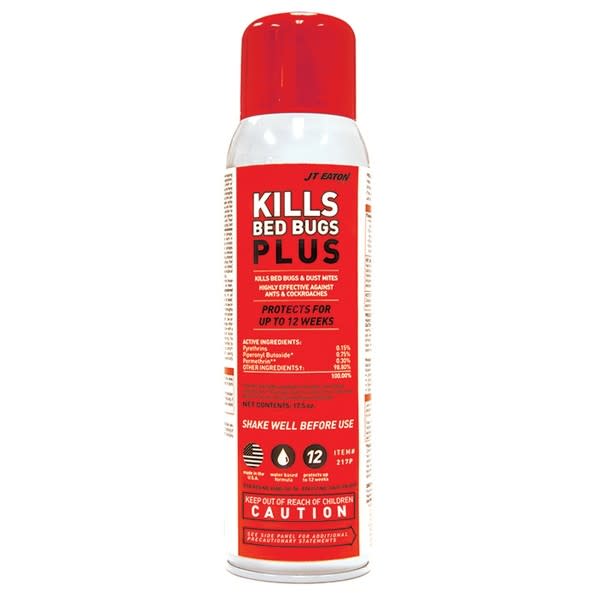 JT Eaton Kills Bed Bugs Plus es el último spray de JT Eaton que ofrece hasta 12 semanas de efecto residual en una práctica forma de aerosol. Su formulación a base de agua que no mancha se puede aplicar a sofás, sillas, colchones, cortinas y alfombras (siempre lea y siga la etiqueta del producto).