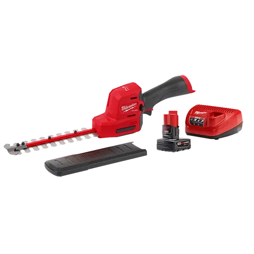 Our MILWAUKEE® M12 FUEL™ 8” Hedge Trimmer is designed to meet the detail trimming needs of landscape maintenance professionals. Compared to a full size hedge trimmer the compact design delivers a lighter weight and one-handed use to make it easier to control in tight access applications. When running into more demanding applications the trimmer has the power to cut ½” branches while also being the fastest cutting in its class for increased application speed and overall productivity. The blade tip guard prevents damage to the property and the blades. Included in the kit is our Hedge Trimmer, M12™ REDLITHIUM™ XC4.0 battery, and M12™ Charger. Our M12 FUEL™ hedge trimmer is fully compatible with 150+ solutions within the M12™ system.