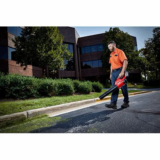 The M18 FUEL™ Blower has the power to clear from 15 ft, gets to full throttle in under 1 second, and is up to 4 lbs lighter than competitors. Designed to meet landscape maintenance professional needs, the POWERSTATE™ Brushless Motor and REDLITHIUM™ HIGH OUTPUT™ XC8.0 Battery deliver 450 CFM and 120 MPH output. The blower features a variable speed trigger and high/low speed settings for increased control. The high setting is for the most demanding applications and low is optimized for clearing debris from flower beds without moving mulch. The lock on button allows the blower to be locked on to full throttle, so the operating hand can be relaxed reducing fatigue. The M18 FUEL™ Blower is fully compatible with 200+ solutions on the M18™ system.
