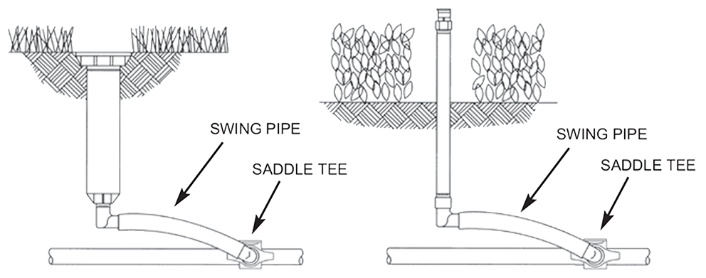 Connects heads to lateral pipes. This low-cost, reliable, and flexible connection prevents heads or pipes from breaking when run over by equipment and allows easy adjustment of the heads to grade.