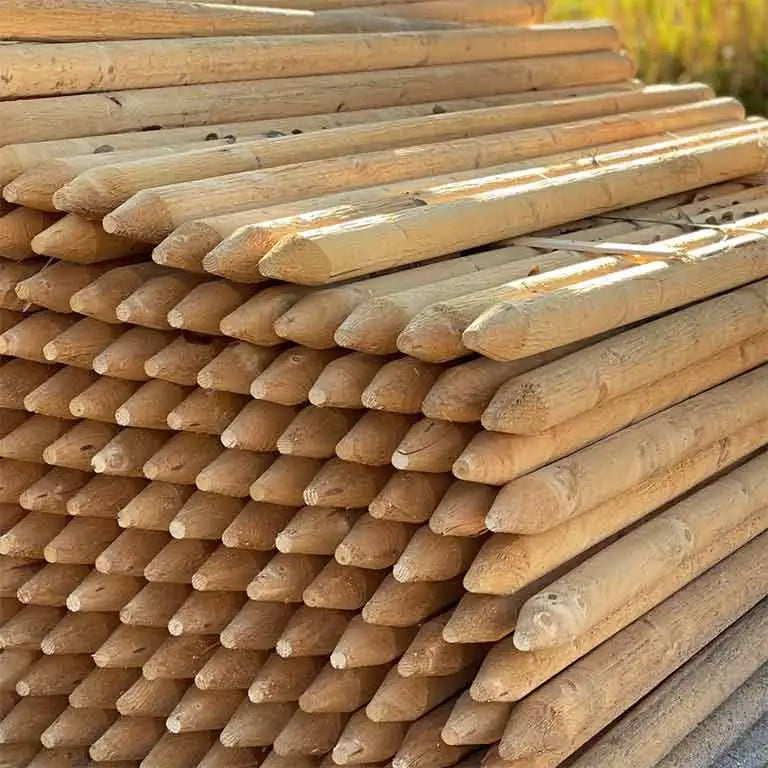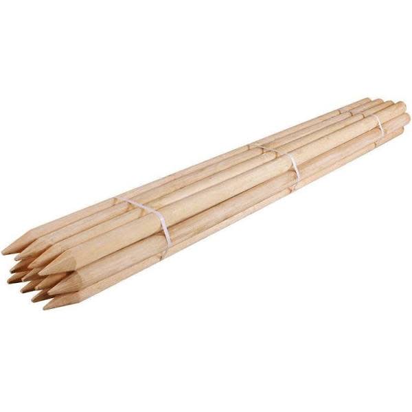 8 ft. long 2 in. round stakes are perfect for supporting saplings. Made out of untreated, natural wood, they are safe to use in any garden or yard. With one pointed end for convenience, these stakes push into the ground with ease.