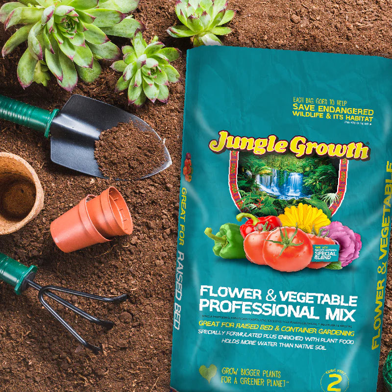 Jungle Growth Planting Mix is a top-notch potting soil mix, formulated to promote rapid root and plant growth. This garden soil is enriched with peat moss and vermiculite, perfect for most indoor and outdoor container plants! The 2-cu ft package ensures your plants get the nourishment they need, without wasting soil.